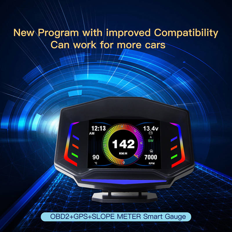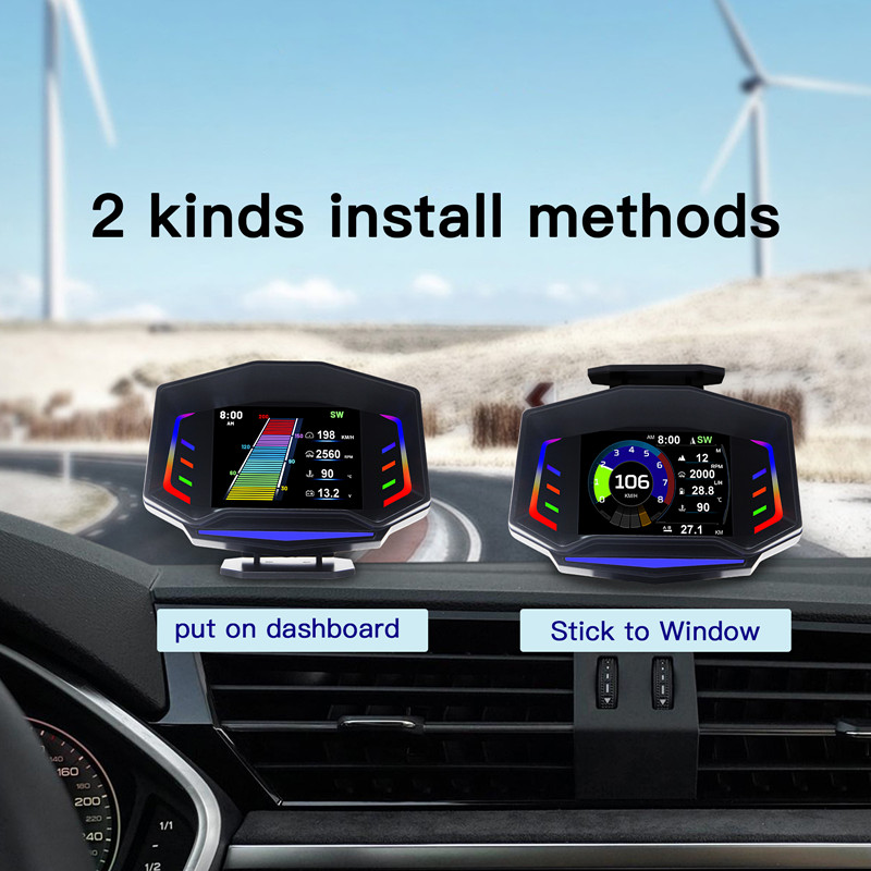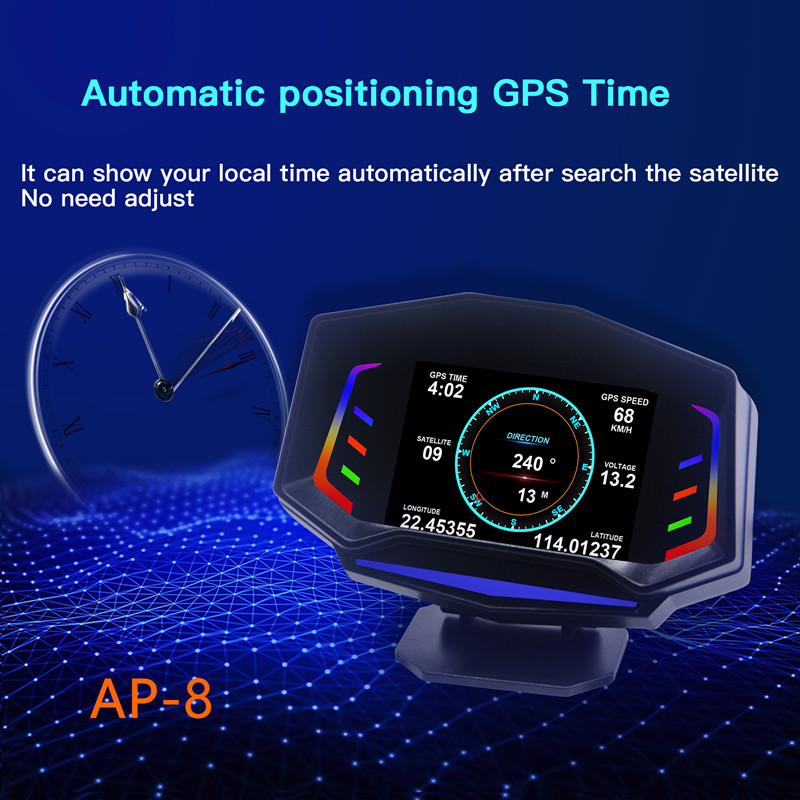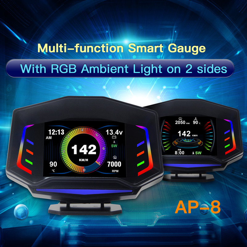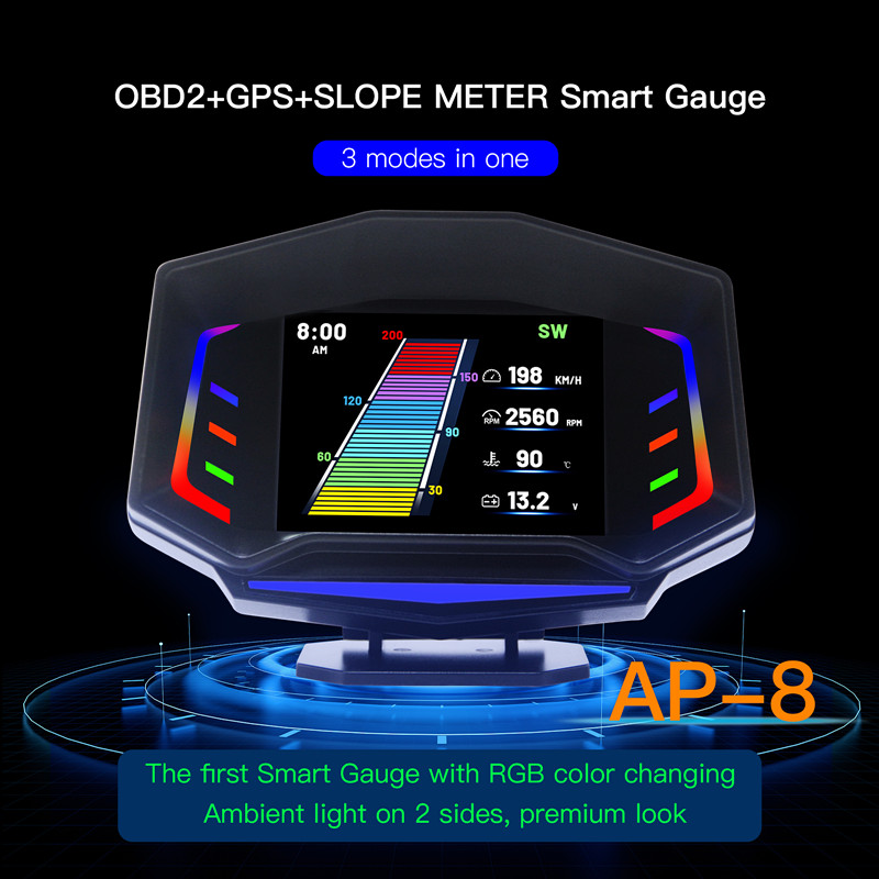 Acclope AP-8 Çok fonksiyonlu Akıllı Dijital Kilometre OBD2 + GPS + Eğim Ölçer Araba HUD RGB Ortam Işığı Ile