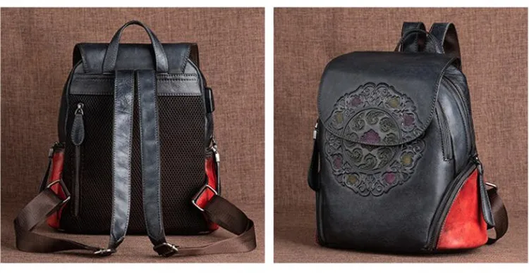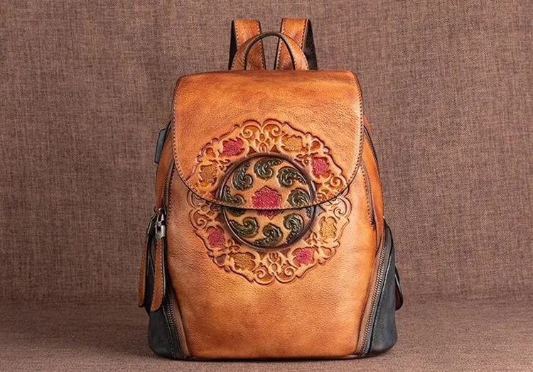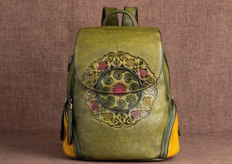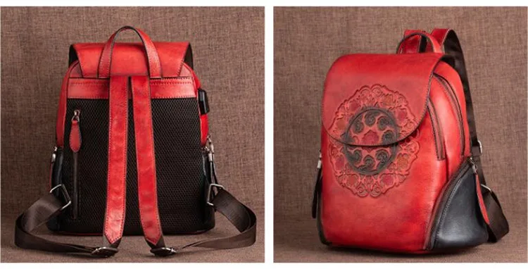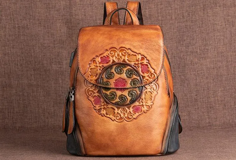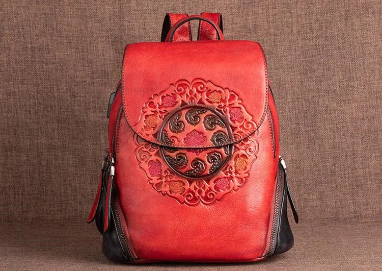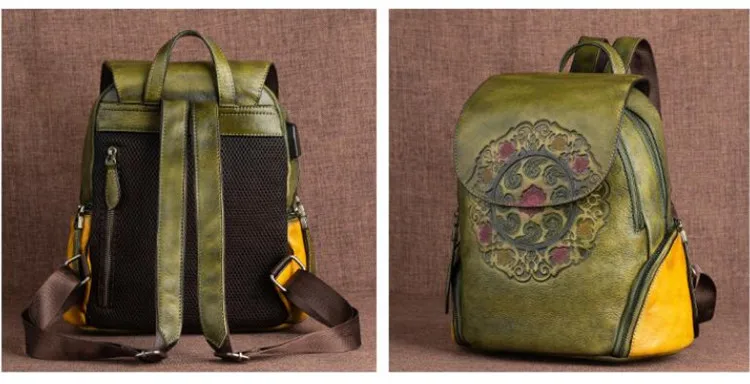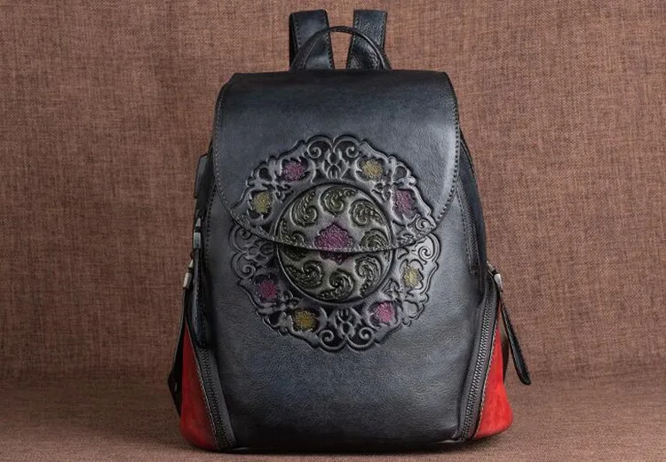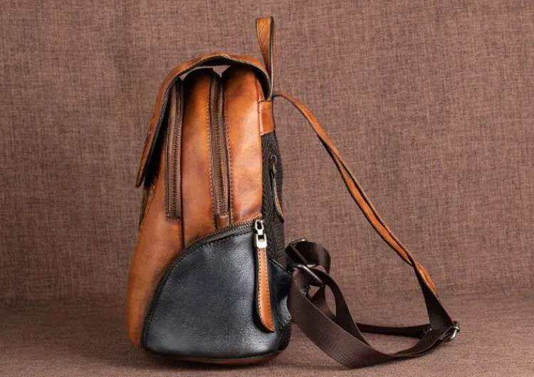 Arion AL-8098 Vintage Kabartmalı Hakiki Deri Sırt Çantası AL-8098