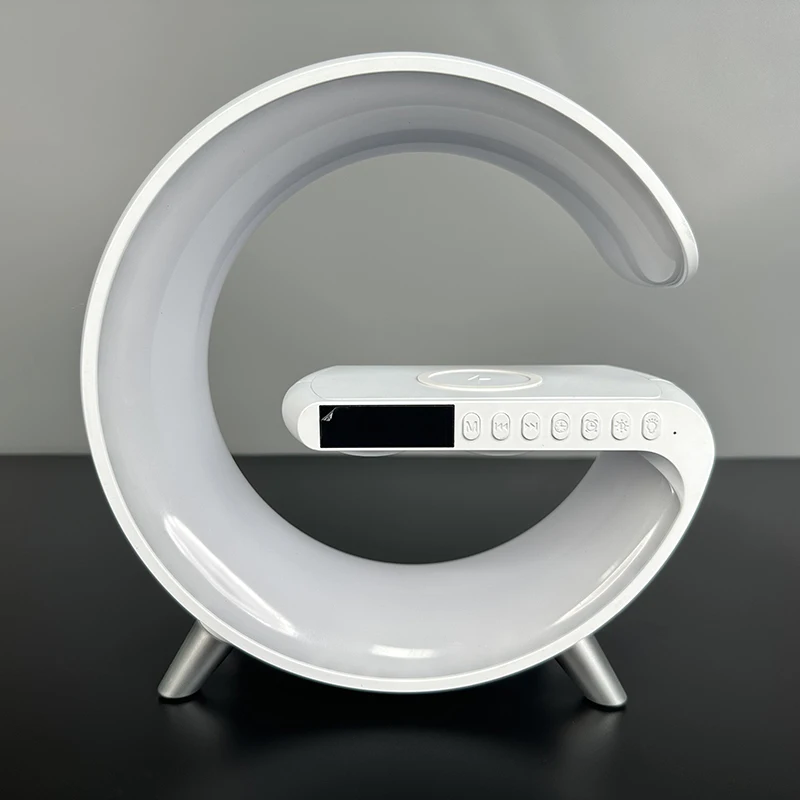 Telefon APP Kontrollü 15W LED RGB Masa/Gece Lambası, Kablosuz Şarj Cihazı, Alarm Masa Saati, Bluetooth Hoparlör