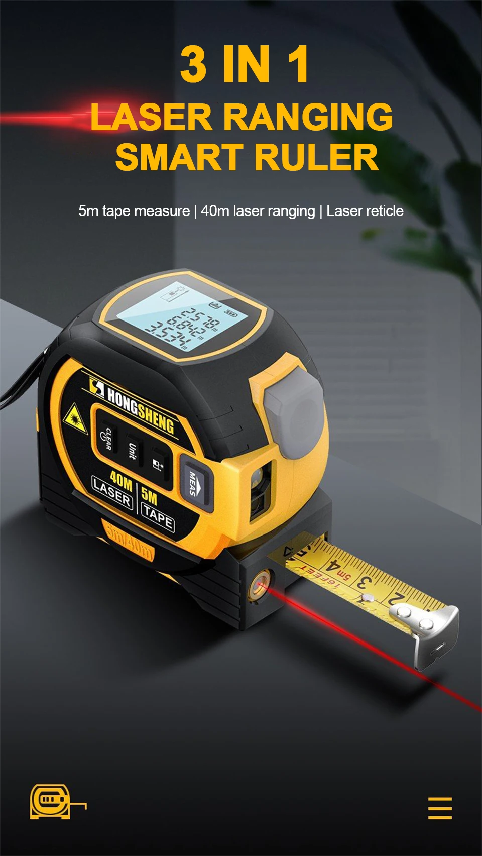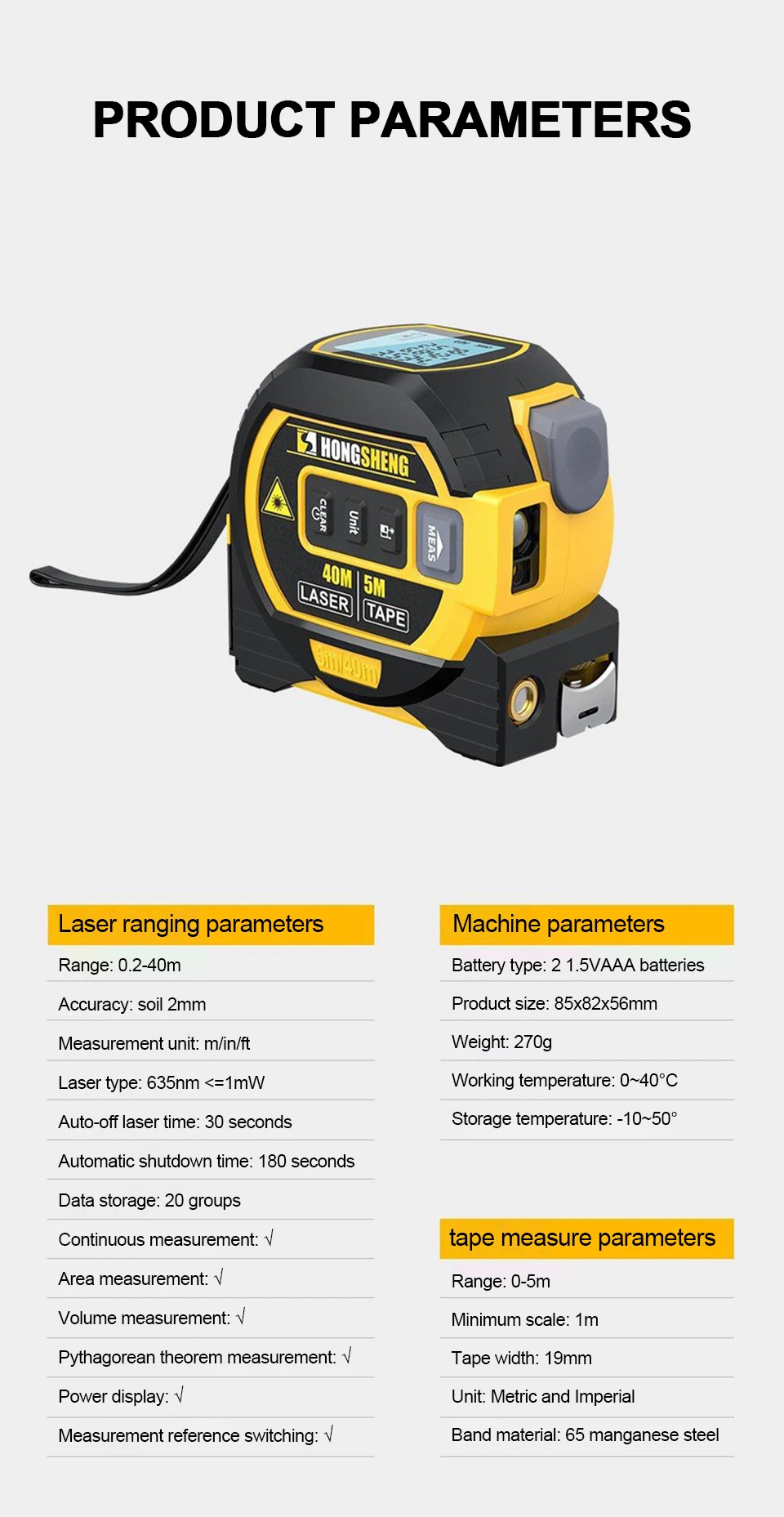 Hong Sheng 3'ü 1 arada LCD Göstergeli 40M Lazer Metre 5M Mezura