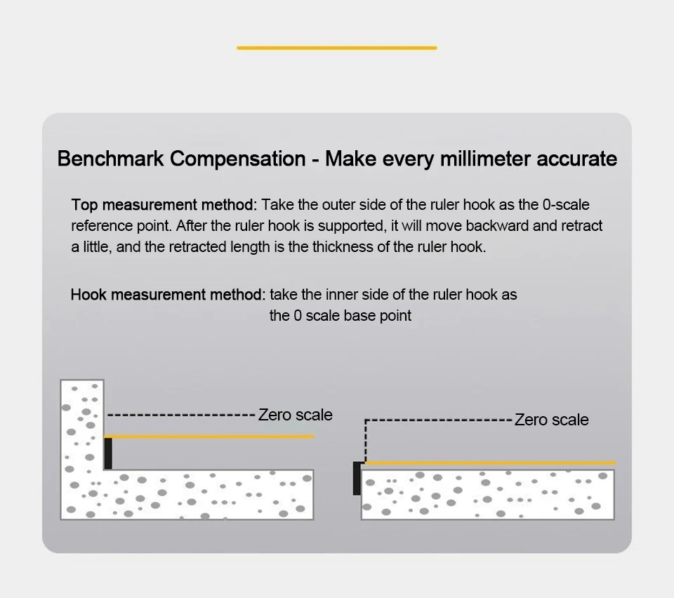 6. Mezura için kendinden kilitlemeli cihaz: Mezura çekildikten sonra mevcut konumu otomatik olarak kilitler ve kilit açma düğmesine bastıktan sonra otomatik olarak geri döner